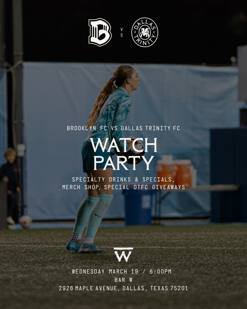 Dallas Trinity FC vs Brooklyn FC – Watch Party at Bar W on Wednesday, March 19th! Kickoff at 6:30! Come early to get the party started before the match! Please enable JavaScript in your browser to complete this form.Please enable JavaScript in your browser to complete this form.Full Name *FirstLastNumber of Guests * to Number the Do you already subscribe to the DTFC Newsletter?YesNoEmail Address *Contact PhoneConfirm Watch Party Registration