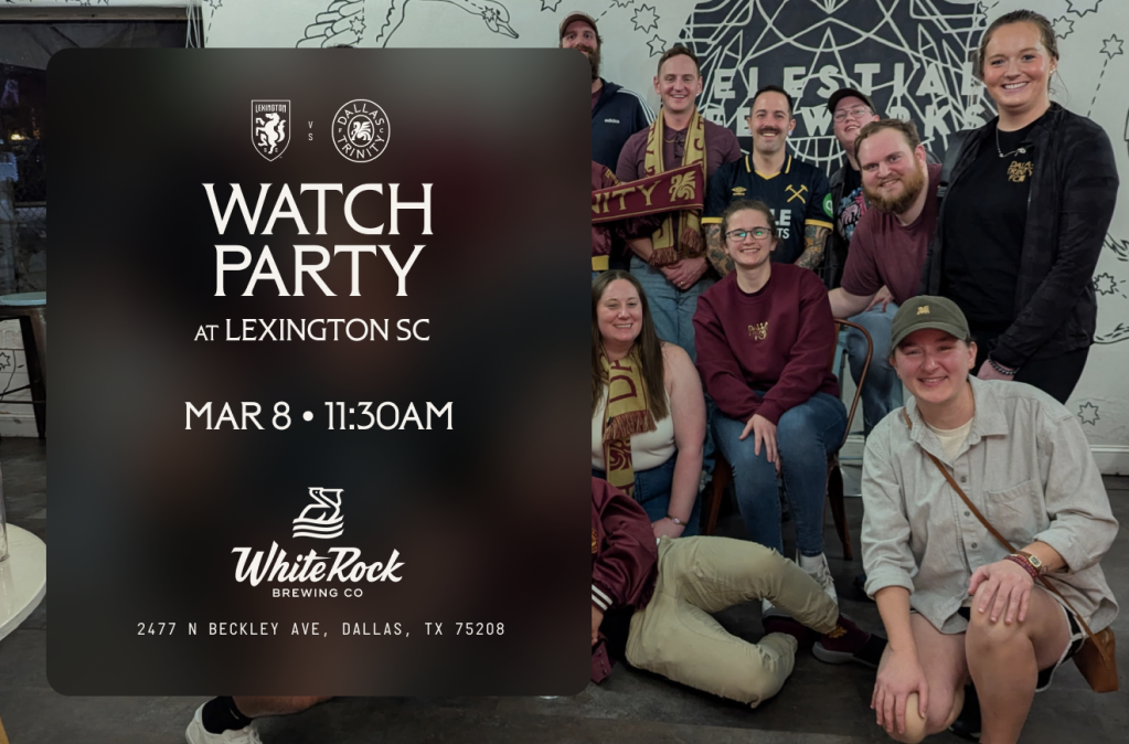 We’re taking over White Rock Brewing Co on Sunday, March 8th as Dallas Trinity FC faces Lexington SC — and you’re invited.