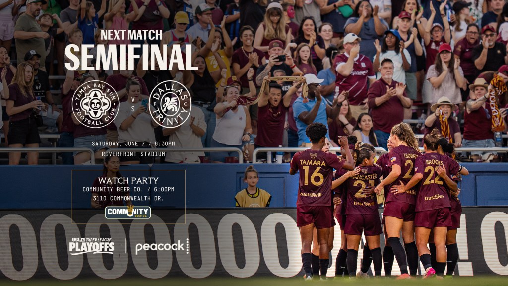 Join Dallas Trinity FC at Community Beer Co as we take on Tampa Bay Sun FC in the inaugural USL Super League Playoff Semifinal! First pint free to all those in DTFC gear!