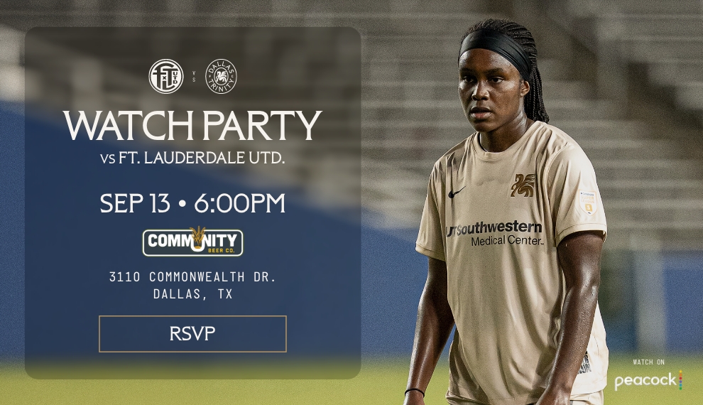 Join us on Saturday, September 13th as Dallas Trinity FC hits the road to take on Fort Lauderdale United FC — and we’re bringing the action to you with an official watch party at Community Beer Co.!